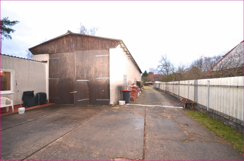 Die massiv errichtete Lagerhalle hat eine Nutzfläche von ca. 300 m² und befindet sich auf einem ca. 607 m² großen hinteren, teilvermessenen Baugrundstück. Die Zuwegung hat eine Breite von 4,5 m. Die Lagerhalle verfügt jeweils vorn und hinten über große Tore und kann damit durchfahren werden.