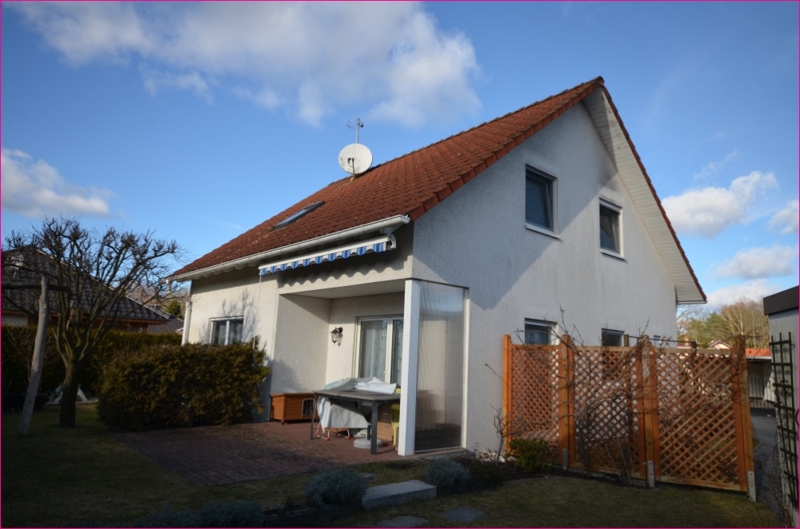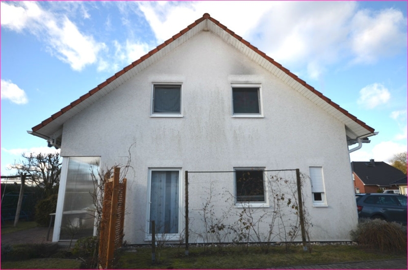 Das im Jahre ca. 1997 errichtete Einfamilienhaus verfügt bei ca. 115 m² über 5 Zimmer, eine Küche, ein Gäste - WC mit Dusche und Handwaschbecken, ein Wannenbad mit separater Dusche sowie einen Hauswirtschaftsraum. Vom überdachten Eingang kommen Sie direkt in die geflieste Diele. Linksseitig gelangen Sie jeweils in den Hauswirtschaftsraum und in die Küche. Das Wohnzimmer befindet geradezu des Flures und ist durch eine moderne Glastür getrennt, die einen großen Lichteinfall in den Flur ermöglicht. Von hier haben Sie direkten Zugang auf die befestigte Teerrasse mit Blick in den wunderschön angelegten und gepflegten Garten. Eine Markise spendet Ihnen im Sommer ausreichend Schatten. Rechtsseitig der Diele befindet sich ein weiteres Zimmer und das Gäste-WC mit Dusche und Handwaschbecken. Rechtsseitig der Diele gelangen Sie über eine massive Holztreppe in das Dachgeschoss. Hier stehen Ihnen drei weitere Zimmer, ein begehbarer Kleiderschrank sowie ein gefliestes Wannenbad mit separater Dusche, WC und Handwaschbecken zur Verfügung.