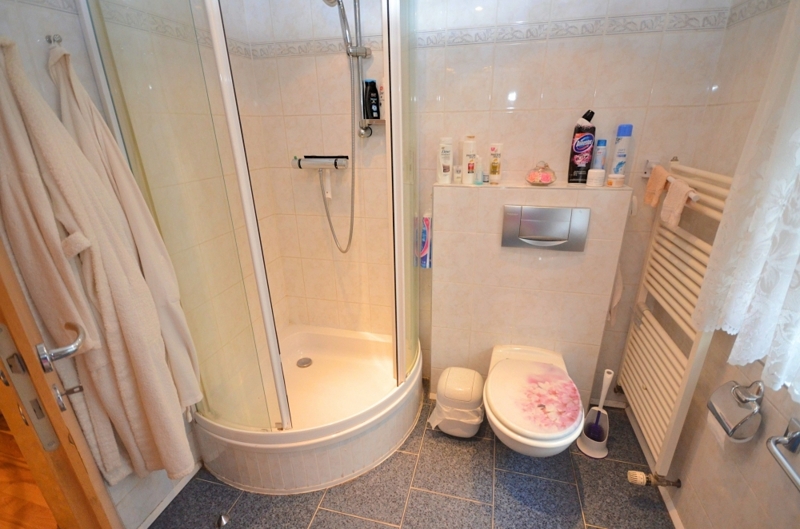 Der Anschluss für die Waschmaschine befindet sich im Duschbad des Erdgeschosses.