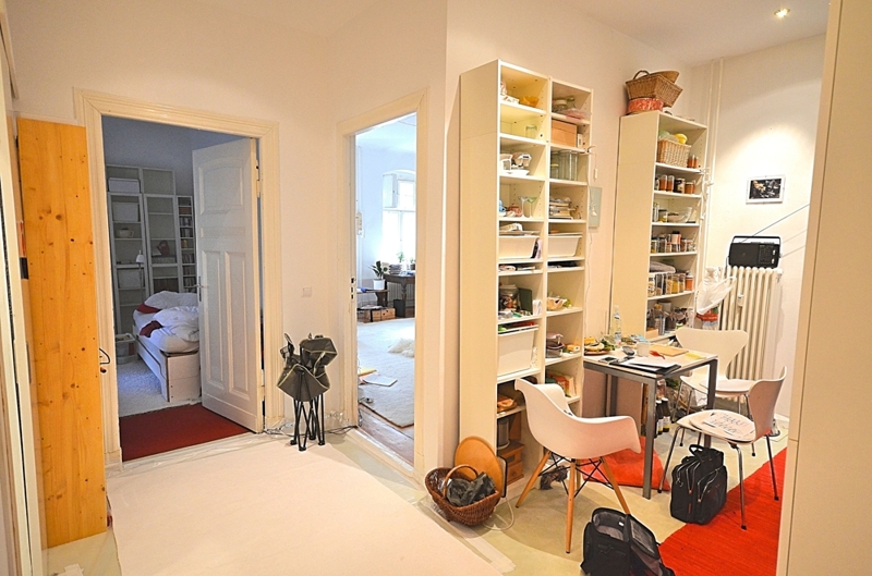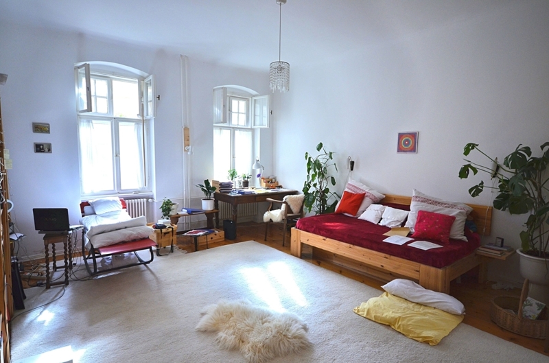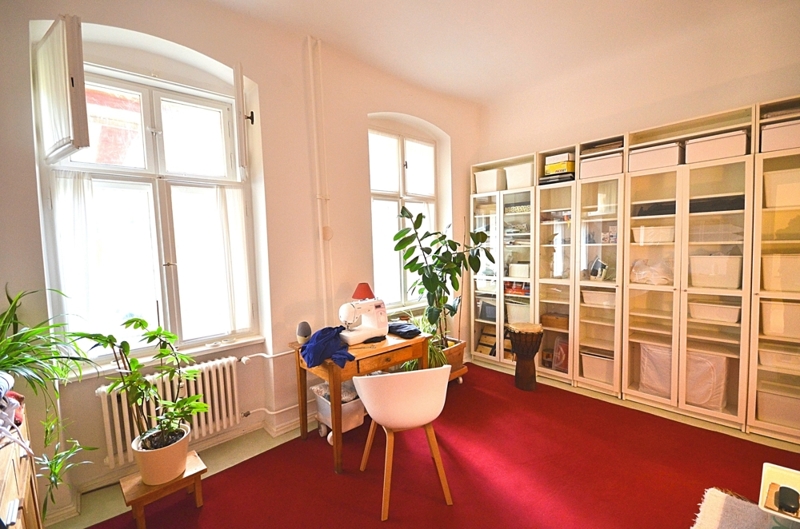 Die Fußböden der Zwei-Zimmer Wohnung verfügen überwiegend aus aufgearbeiteten Holzdielen. Die Eingangstür der Wohnung sowie einige Fenster stammen noch aus Zeiten des Jugendstils. Die Raumhöhe beträgt ca. 3,0 Meter.