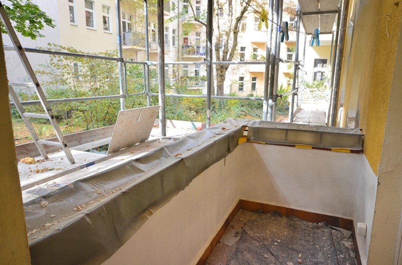 Achtung: Derzeit erhält hintere Teil des Mehrfamilienhauses einen neuen Farbanstrich. Die Bauarbeiten dauern noch an.