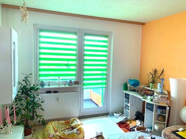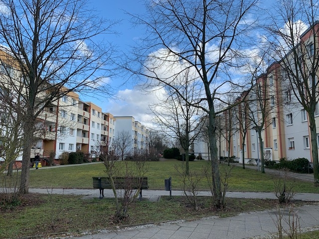 Die hier angebotene derzeit noch !! vermietete Zwei-Zimmer-Wohnung liegt in der 3. Obergeschoss eines 4 Etagen-Mehrfamilienhauses mit Vollkeller aus dem Jahre ca. 1983. Der Wohnkomplex verfügt über insgesamt 280 Wohnungen. Der gesamte Wohnkomplex steht auf einem 31.248 m² großen Grundstück. Die Wohnung verfügt über insgesamt ca. 45,56 m² Wohnfläche, welche sich über 2 Zimmer, einen Flur, eine Küche sowie über ein gefliestes Wannenbad mit WC und Handwaschbecken verteilt. Von dem zentral liegenden Flur sind sämtliche Zimmer direkt erreichbar. Auf den Balkon mit Blick in den grünen Innenhof gelangen Sie jeweils vom Wohnzimmer und von der Küche. Zusätzlich gehört zur Wohnung auch ein eigener Kellerraum. Zur Wohnung gehört ein PKW-Stellplatz.