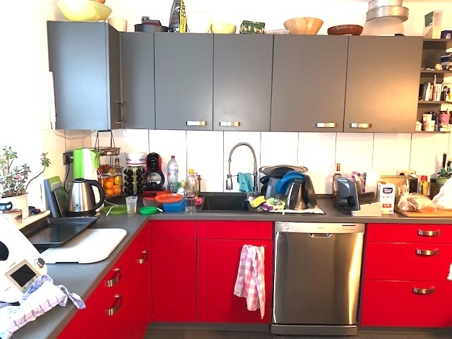 - eine moderne Einbauküche mit elektrischen Geräten eingebaut