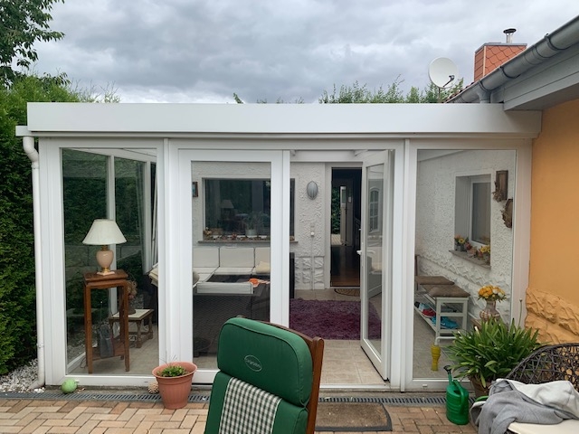 Errichtung des Wintergartens, Neueindeckung des Daches, Erneuerung der Innentüren, Pflasterung der Gehwege
