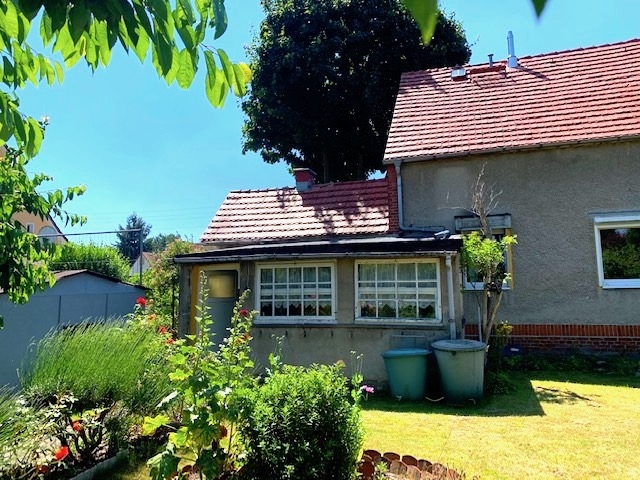 Das im Jahre ca. 1927 in Massivbauweise errichtete Einfamilienhaus, verfügt bei ca. 80 m² Wohnfläche über 4 Zimmer, eine Küche mit Essplatz sowie ein Wannenbad. In späteren Jahren wurde eine Windfang in Massivbauweise errichtet, der den heutigen Haupteingang darstellt. Vom überdachten Eingang kommen Sie in einen Flur. Linksseitig gelangen Sie in die das Wohnzimmer und direkt in ein weiters Zimmer, wobei das Wohnzimmer ein Durchgangszimmer darstellt.