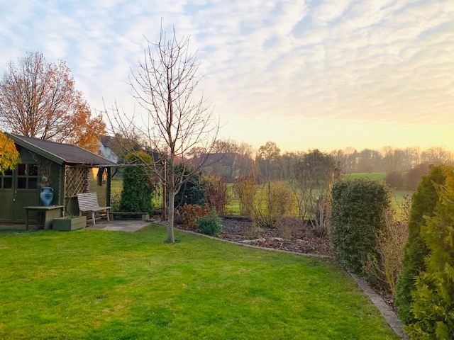 Das nach süd-westen ausgerichtete Grundstück ist eingezäunt, liebevoll angelegt und gepflegt. Ein Holzgeräteschuppen dient als Unterstellmöglichkeit für Gartenmöbel und Geräte. Ein PKW-Carport befindet sich vor dem Haus. Auf dem Hausdach wurde eine Solaranlage zur Warmwasserbereitung angebracht.