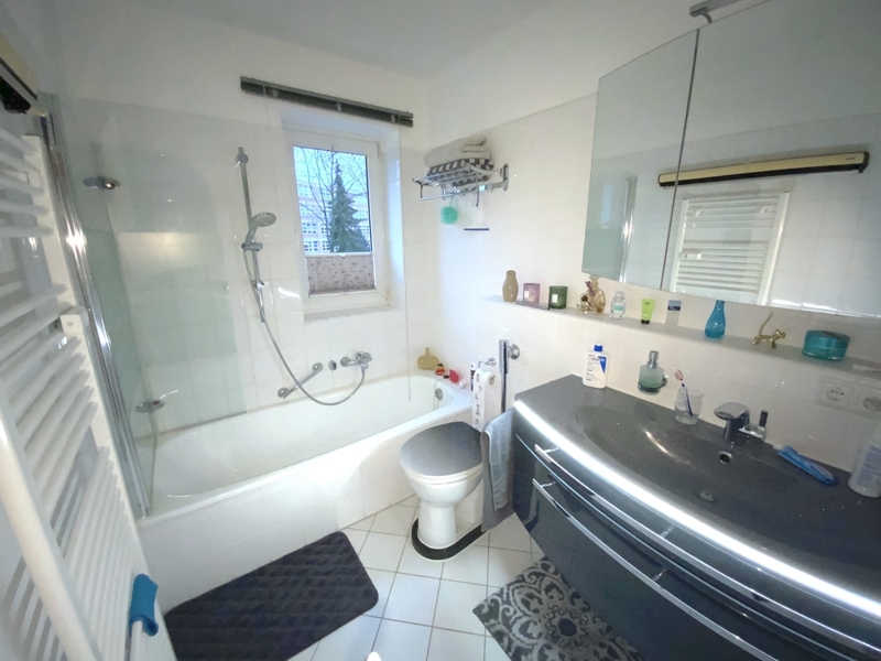 Die helle und geräumige Wohnung umfasst 3 Zimmer, tagesbelichtete Küche , gefliestes Wannenbad mit Duschabtrennung, WC und Handwaschbecken. Vom Wohnzimmer gelangen Sie direkt auf die befestigte Terrasse mit Gartenanteil als Sondernutzungsrecht. Ein Markise spendet im Sommer zusätzlichen Schatten.