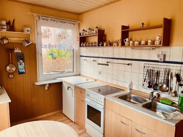 Im Erdgeschoss erwarten Sie drei Zimmer, ein Flur, eine Wohnküche mit Essplatz sowie ein Badezimmer mit Handwaschbecken, Stand-WC und Badewanne. Das Dachgeschoss beherbergt zwei weitere Zimmer und eine praktische Abstellkammer. Den Keller erreichen Sie über einen Zugang im Erdgeschoss sowie über einen separaten Zugang von außen. Hier stehen Ihnen 3 weitere Räume zur Verfügung. Die gute Lage an zwei befestigten Straßen rundet das Angebot ab.