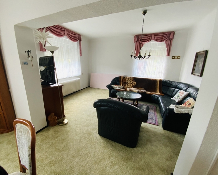 Das Haus mit Vollkeller wurde in solider Massivbauweise errichtet und bietet rund 100 m² Wohnfläche, die sich auf drei Zimmer verteilen. Im Erdgeschoss erwartet Sie ein großzügiges Wohnzimmer mit ca. 24 m², eine gemütliche Küche mit Essplatz sowie ein gefliestes Badezimmer mit Wanne, WC und Handwaschbecken und eine geräumige Diele die alle Räume miteinander verbindet.
