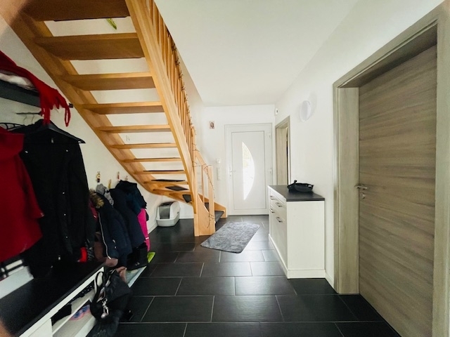 Das massiv errichtete Wohnhaus besticht durch seine zeitgemäße Ausstattung und ein modernes Wohnkonzept. Bereits im Eingangsbereich vermittelt der geflieste Flur ein gepflegtes und einladendes Ambiente. Für angenehme Wärme im gesamten Haus sorgt eine komfortable Fußbodenheizung, die gleichzeitig ein behagliches Wohngefühl schafft.