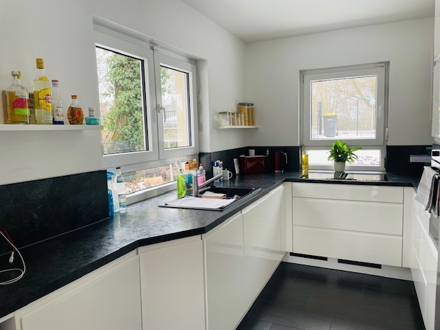 Die großzügigen Fensterflächen im Erd- und Dachgeschoss sind mit praktischen Außenjalousien ausgestattet, die sowohl effektiven Sonnenschutz als auch zusätzliche Sicherheit bieten. Ein besonderes Highlight ist die moderne Einbauküche mit hochwertigen Elektrogeräten, die bereits im Kaufpreis enthalten ist und sofort genutzt werden kann.